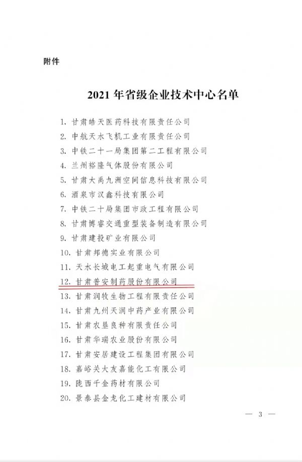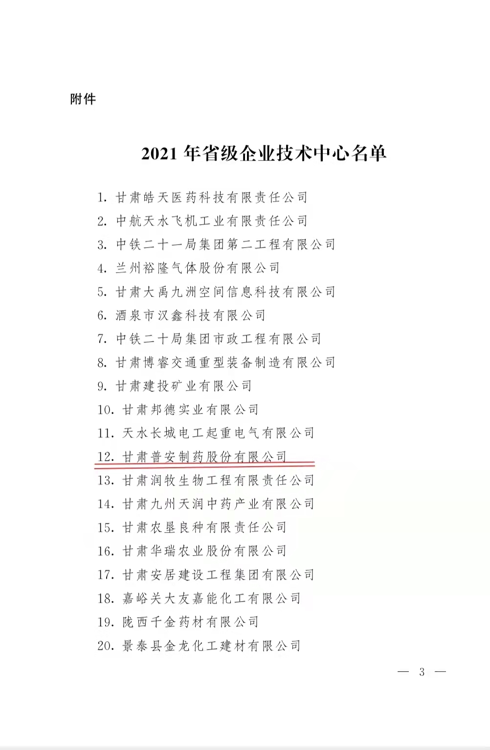​喜報!喜報!普安制藥通過“2021年省級企業技術中心”認定