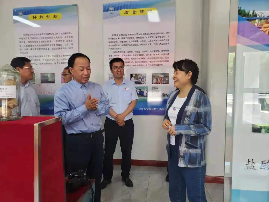 6月8日,甘肅省政協(xié)副秘書長、農(nóng)工黨甘肅委員會專職副主委張彥凌一行十一人到普安公司調(diào)研。張彥凌一行察看了公司文化展廳、制劑外包車間、提取車間等。隨后,雙方召開座談會。