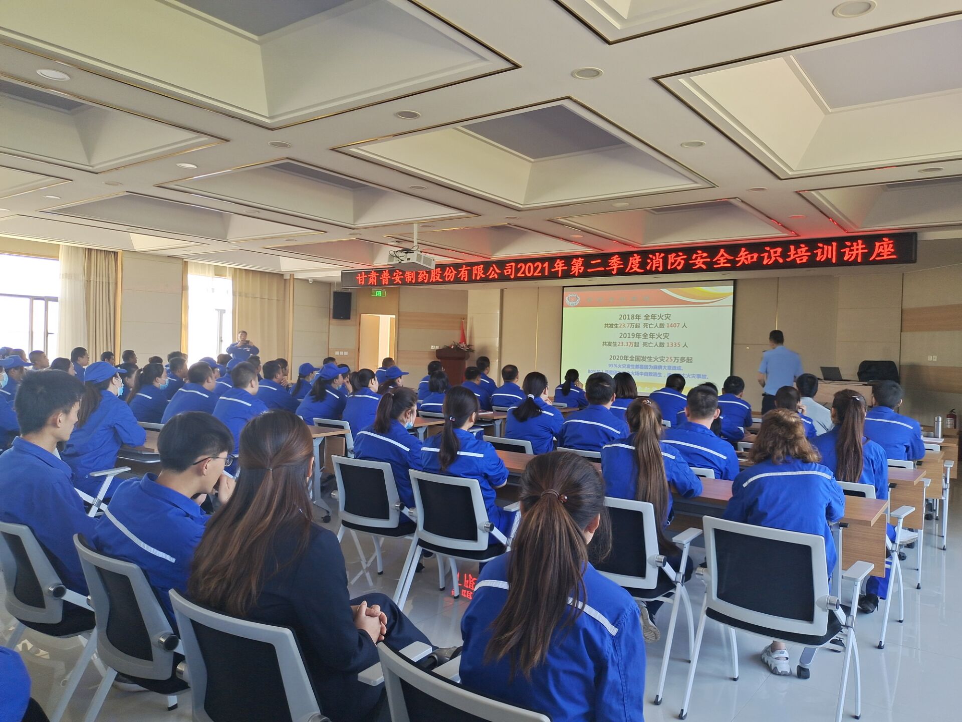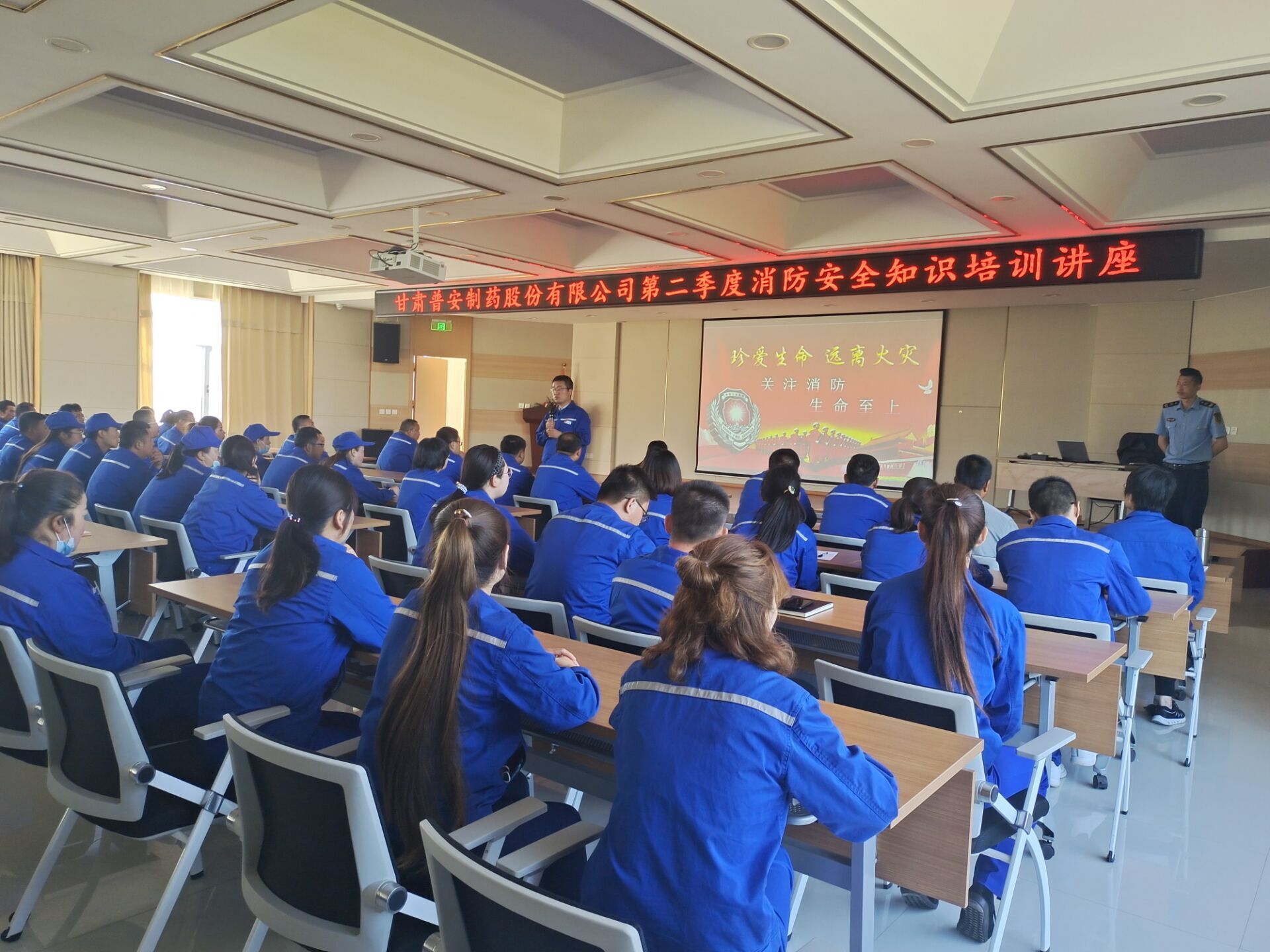為踐行全國第20個“安全生產月”和“安全生產隴原行”活動,進一步增強員工消防安全意識和自我防范意識,提高員工自救互救能力。6月3日,普安公司組織開展消防安全培訓及演練活動,特邀甘肅省家盾消防咨詢服務有限公司丁永忠教官進行培訓并指導演練,全體員工約300余人參加。