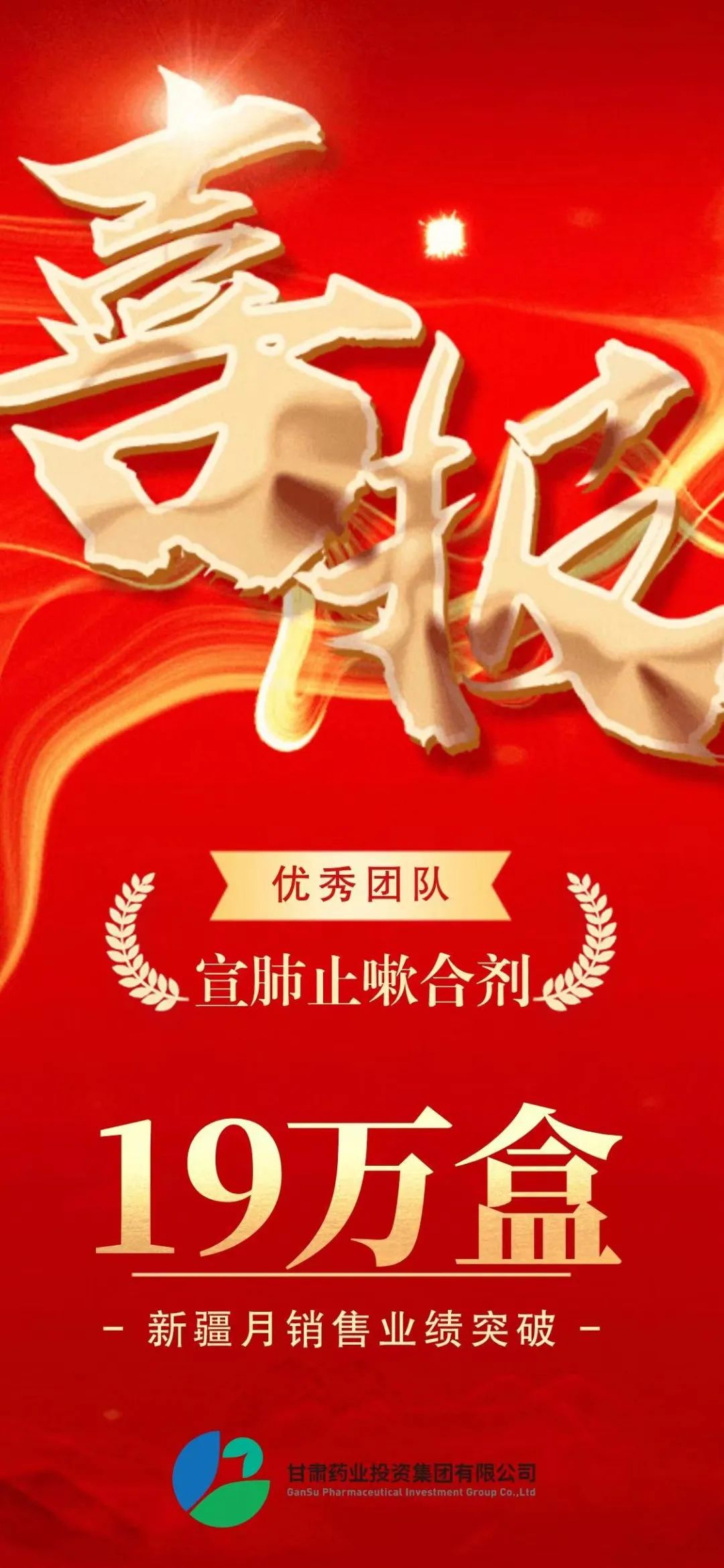 喜報!宣肺止嗽合劑新疆月銷售業績突破19萬盒