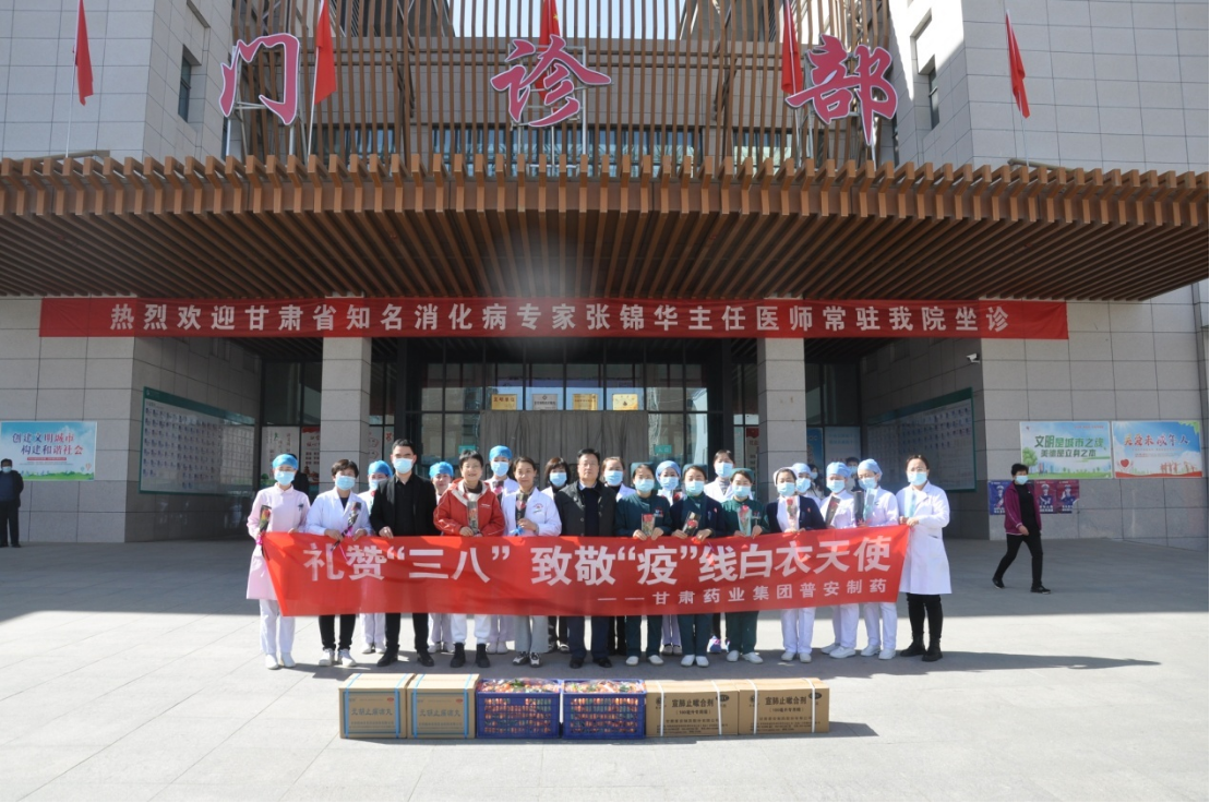 3月7日下午,普安制藥一行四人前往武威市中醫院慰問奮戰在疫情防控“疫”線的女醫護人員,為她們獻上了鮮艷的玫瑰、新鮮的水果和藥品,祝奮戰在“疫”線以及默默奉獻在醫院各個工作崗位的全體女職工們“三八”節日快樂,祝愿她們永遠健康美麗,幸福快樂。