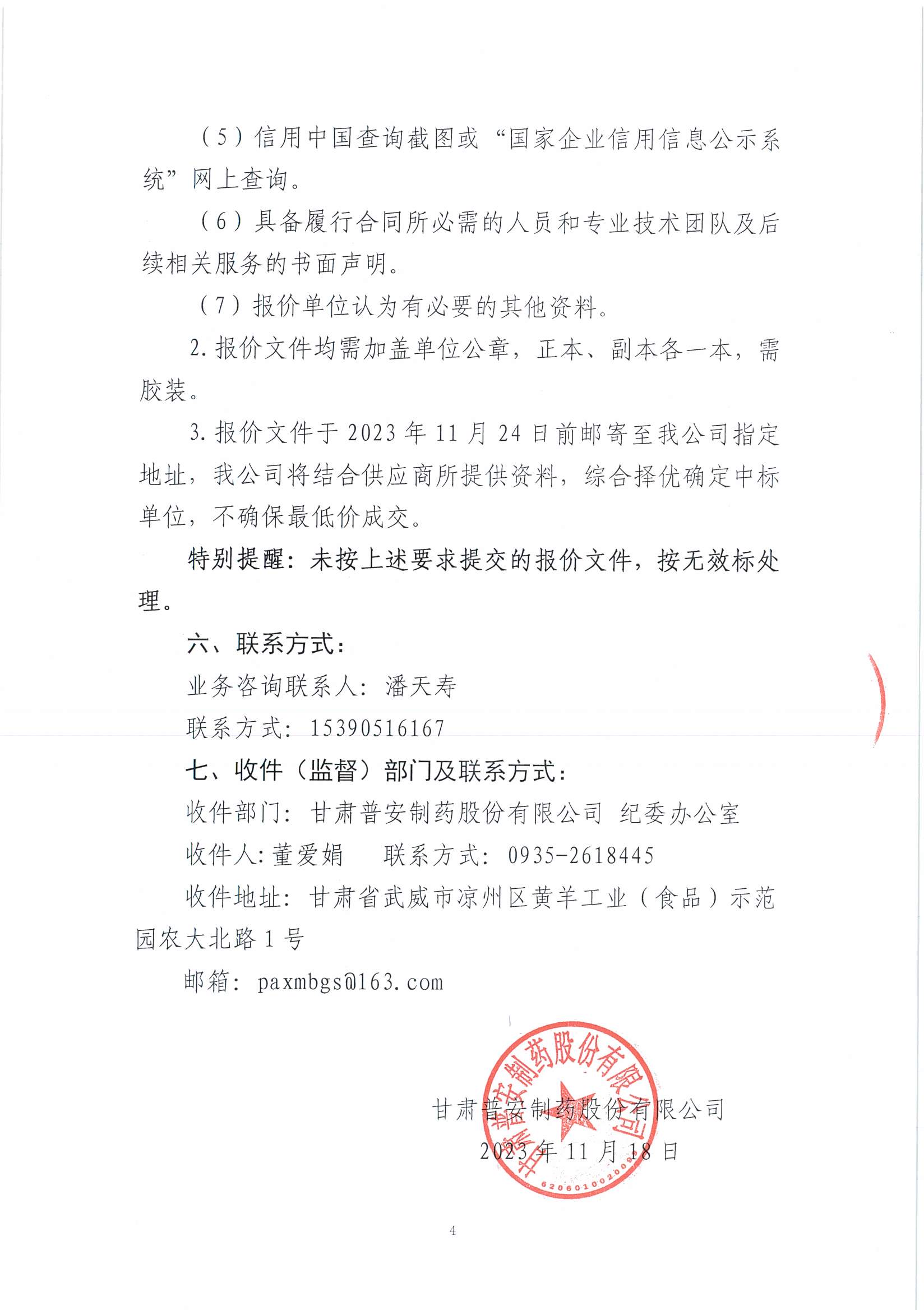 甘肅普安制藥股份有限公司年產(chǎn)5000萬(wàn)盒(3億支)宣肺止嗽合劑等液體制劑生產(chǎn)線升級(jí)改造項(xiàng)目環(huán)評(píng)驗(yàn)收詢價(jià)公告