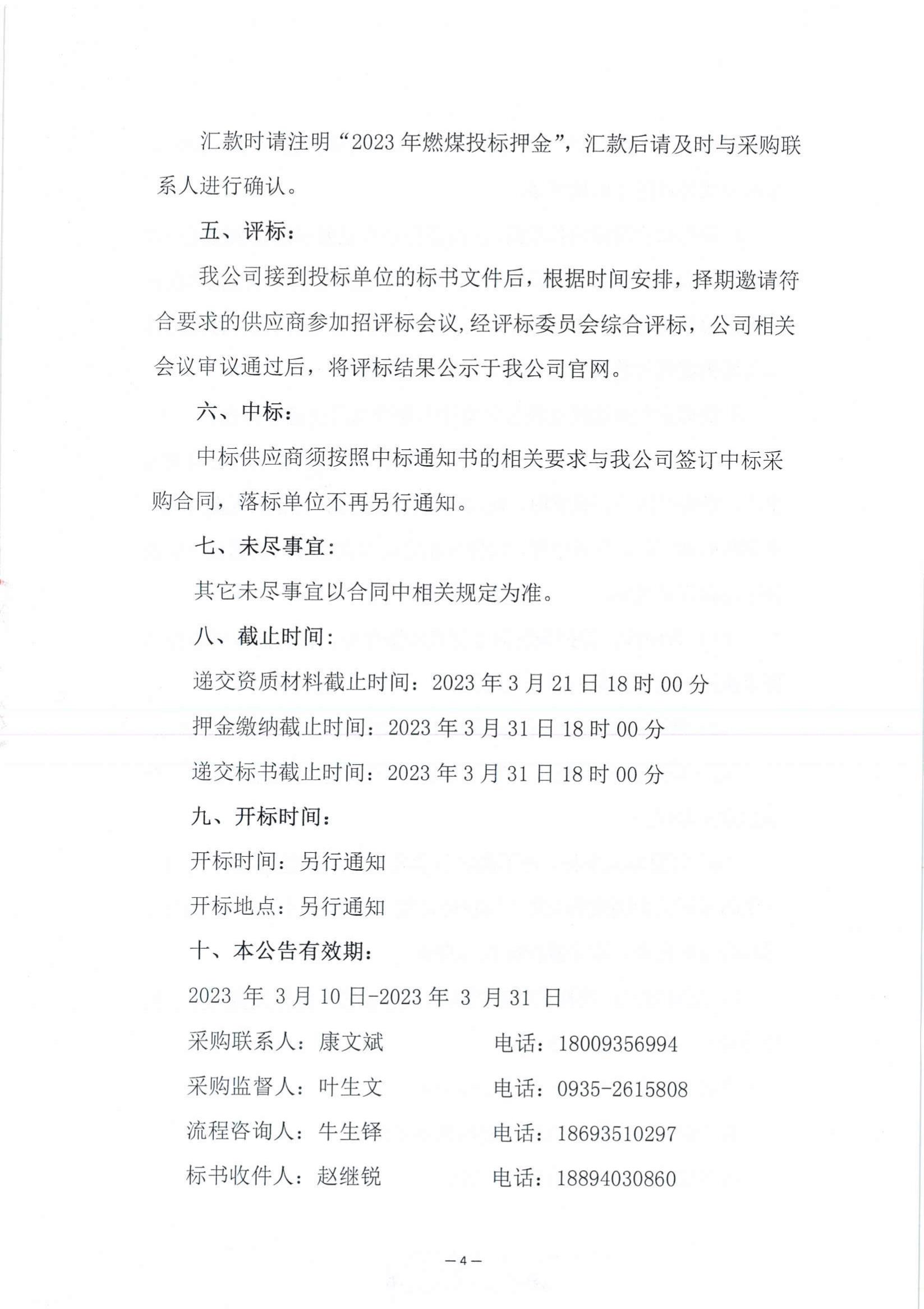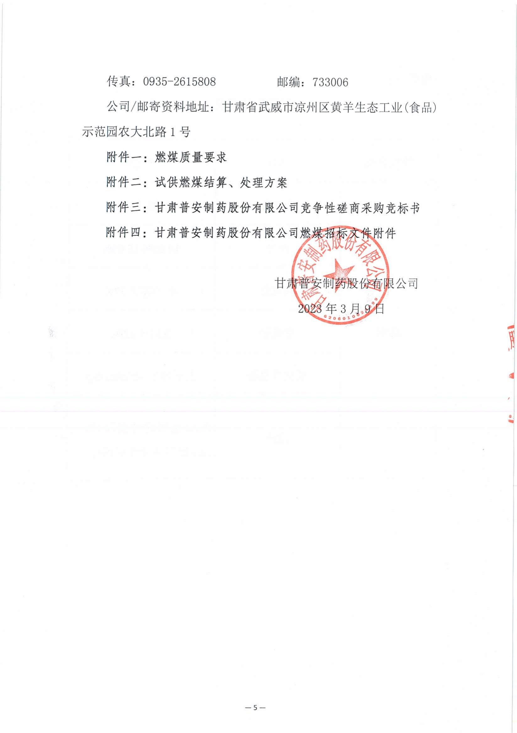 具體內容詳見附件:甘肅普安制藥股份有限公司2023年4月燃煤采購競爭性磋商公告