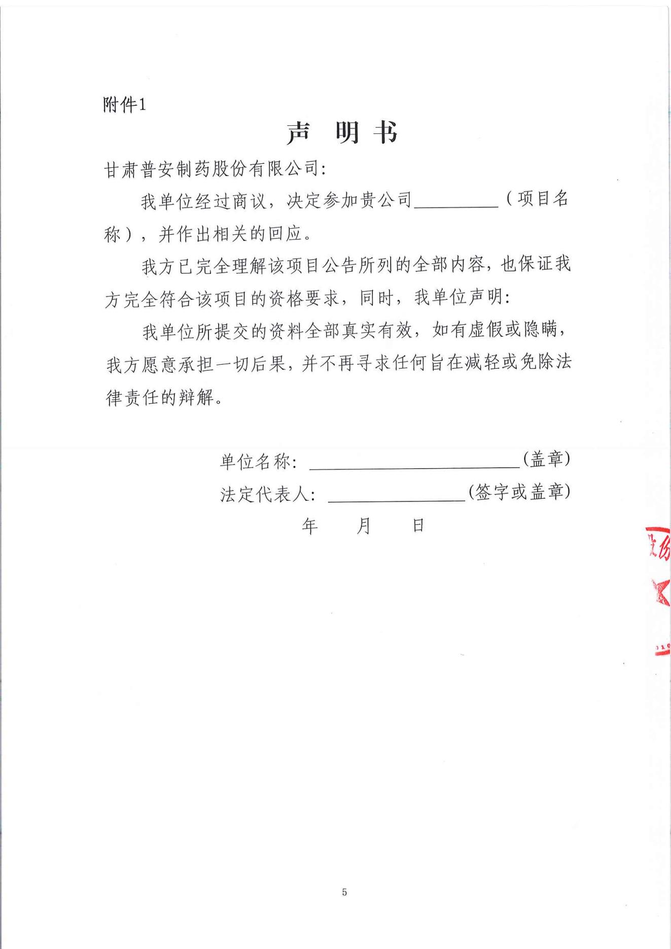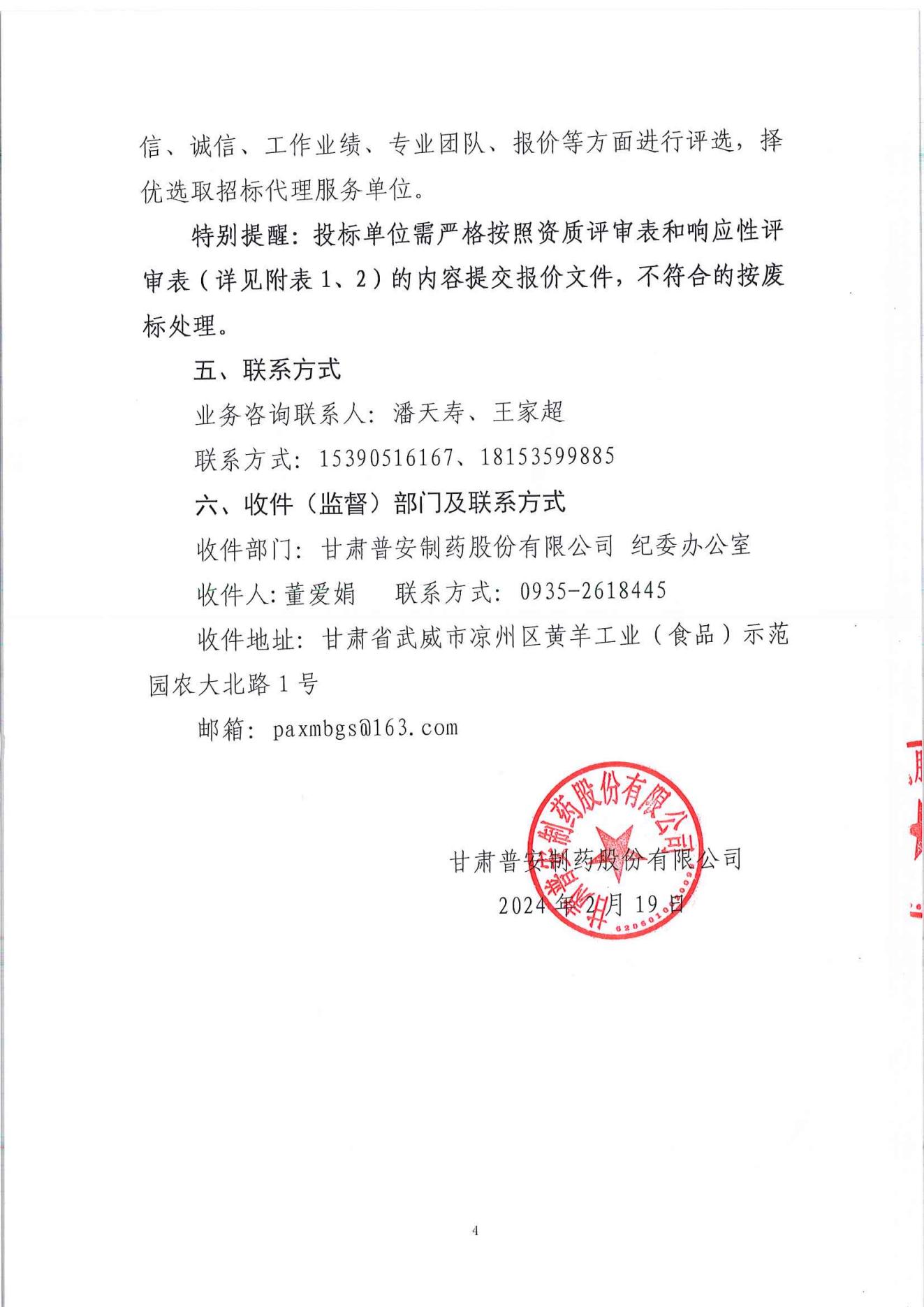 甘肅普安制藥股份有限公司基礎設施改造項目招標代理招標公告