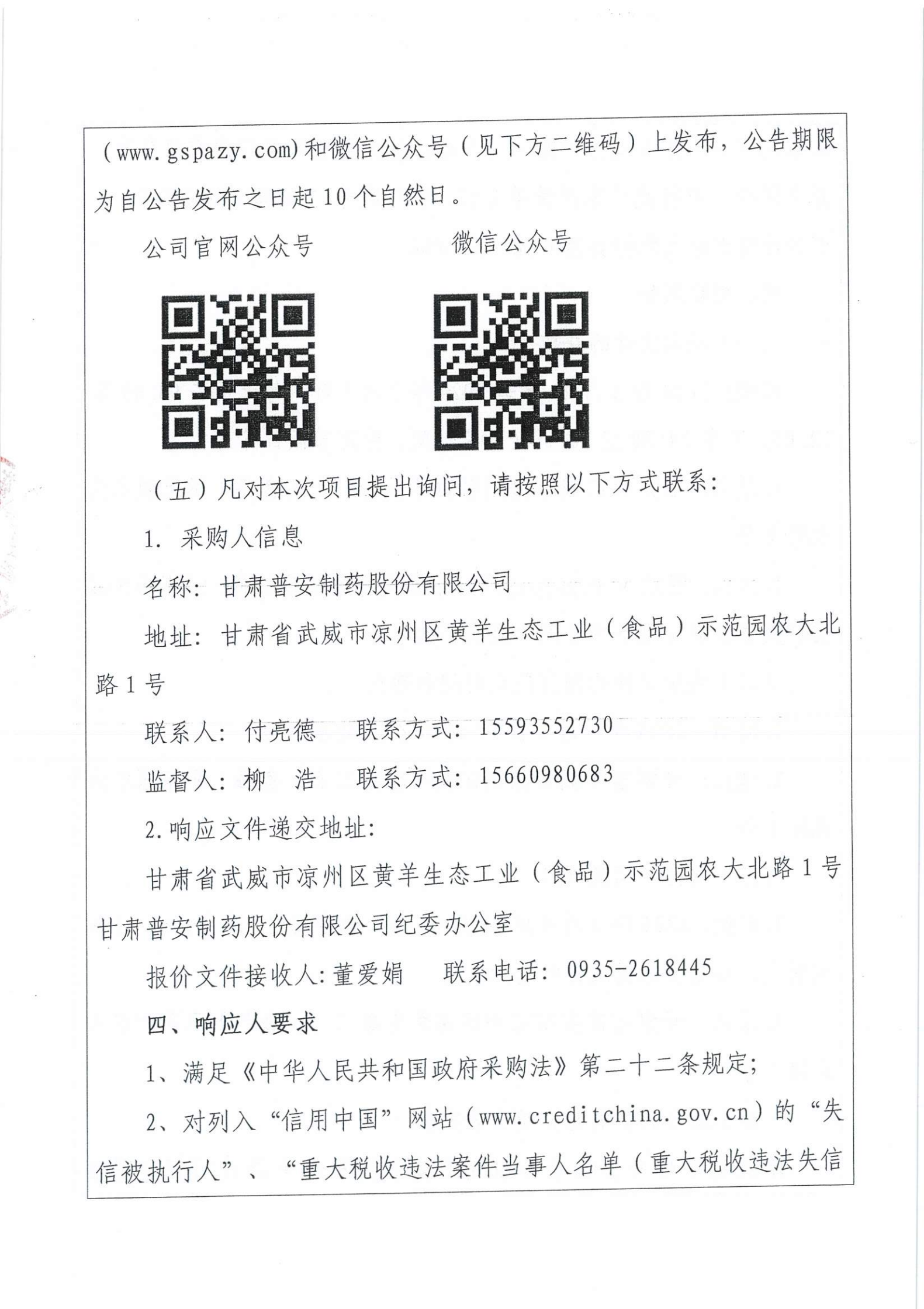 甘肅普安制藥股份有限公司裝卸服務競爭性磋商采購公告
