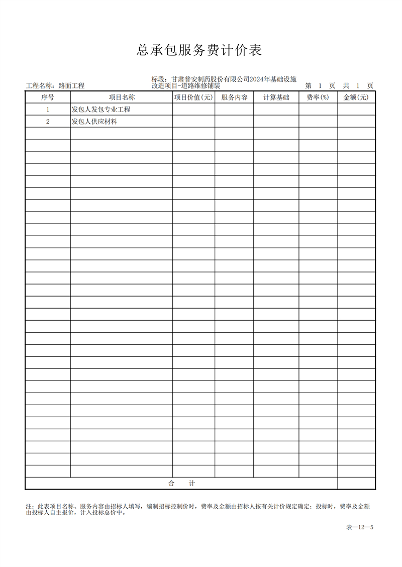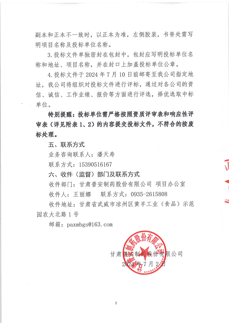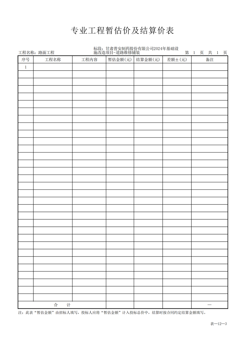 甘肅普安制藥股份有限公司2024年基礎(chǔ)設(shè)施改造項(xiàng)目-道路維修鋪裝工程招標(biāo)公告