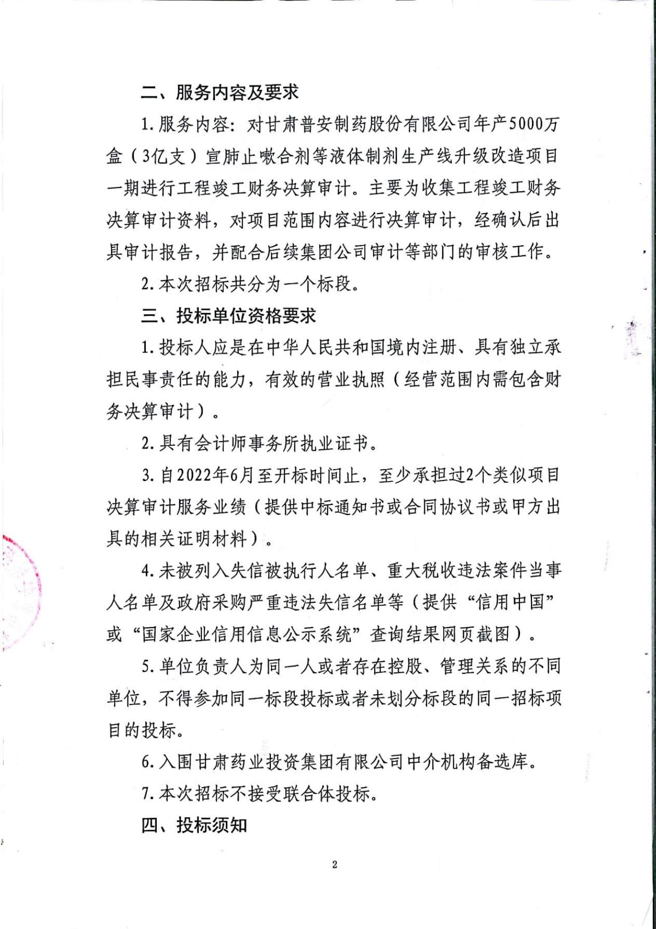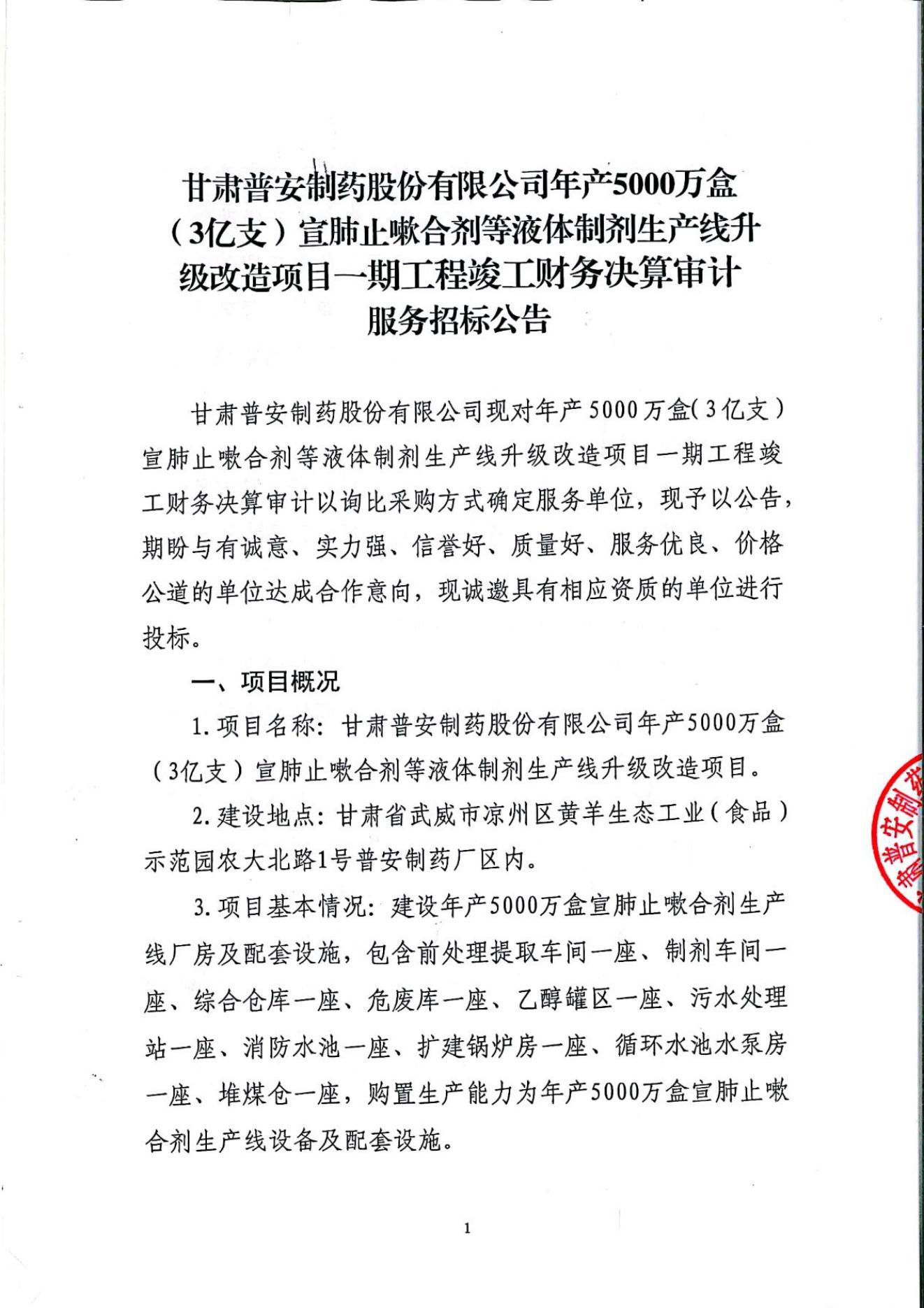 普安制藥年產(chǎn)5000萬(wàn)盒宣肺止嗽合劑等液體制劑生產(chǎn)線升級(jí)改造項(xiàng)目一期竣工決算審計(jì)服務(wù)招標(biāo)公告