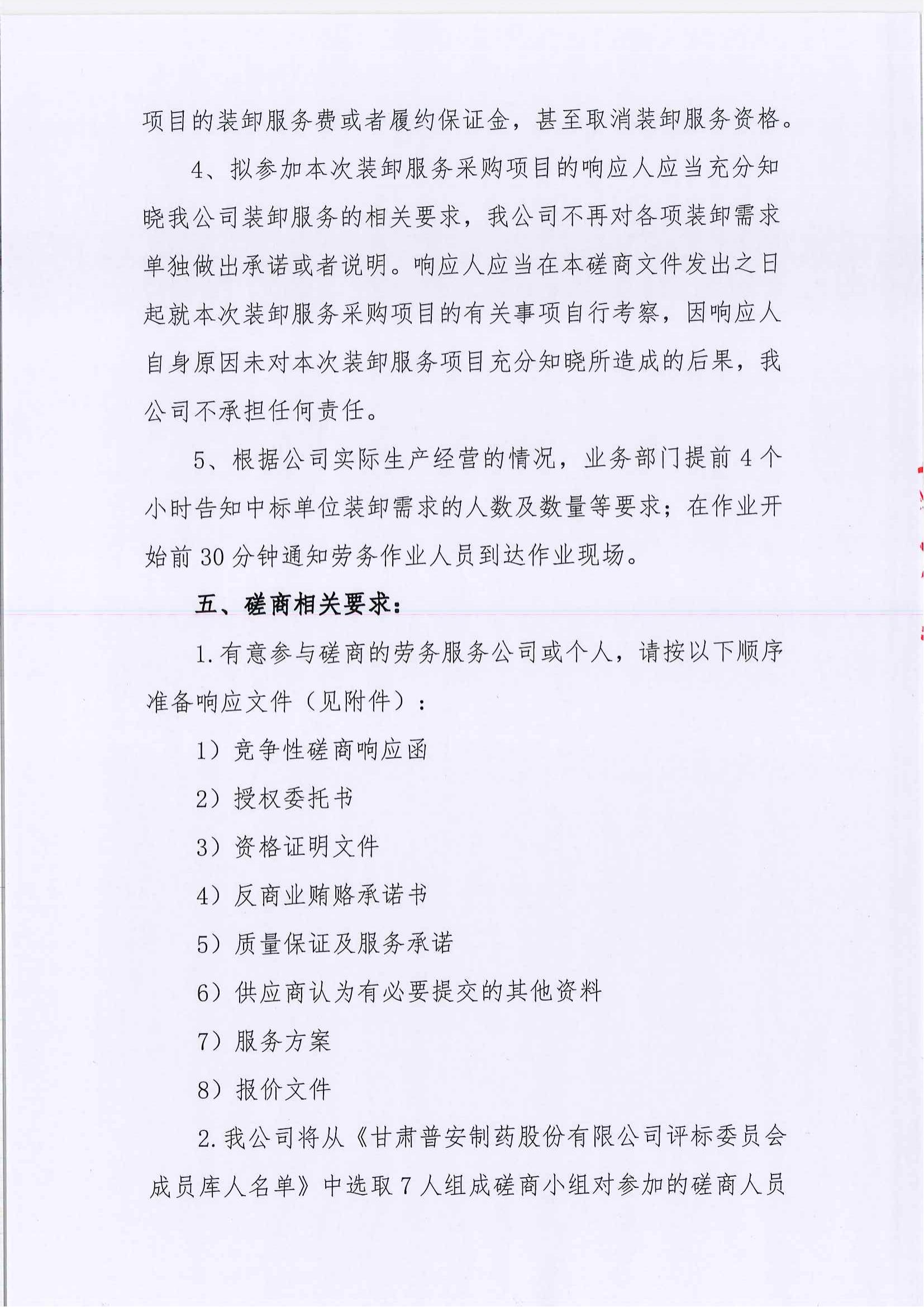 甘肅普安制藥股份有限公司裝卸服務(wù)單位招標(biāo)公告